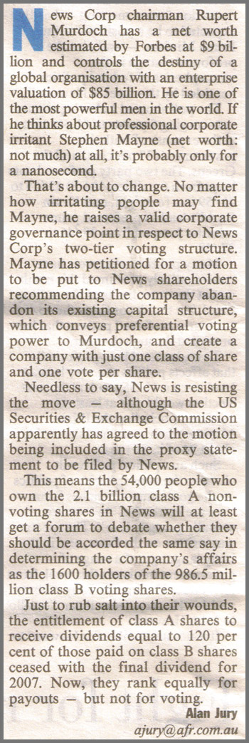Murdoch maintains control of News Corp - Click here to watchTHEAGE.COM.AU - 20 October, 2007